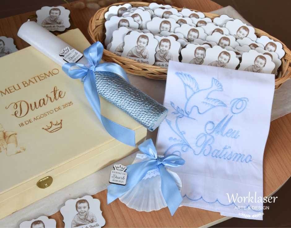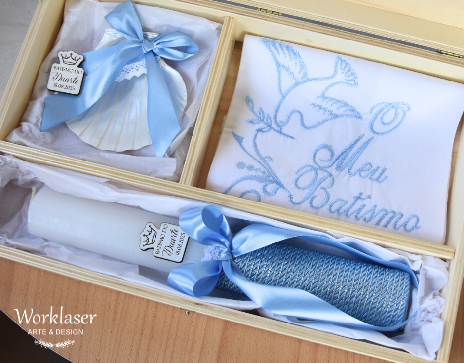 – Pode adquirir apenas a caixa personalizada ou o conjunto completo personalizado (caixa+vela+concha+toalha)