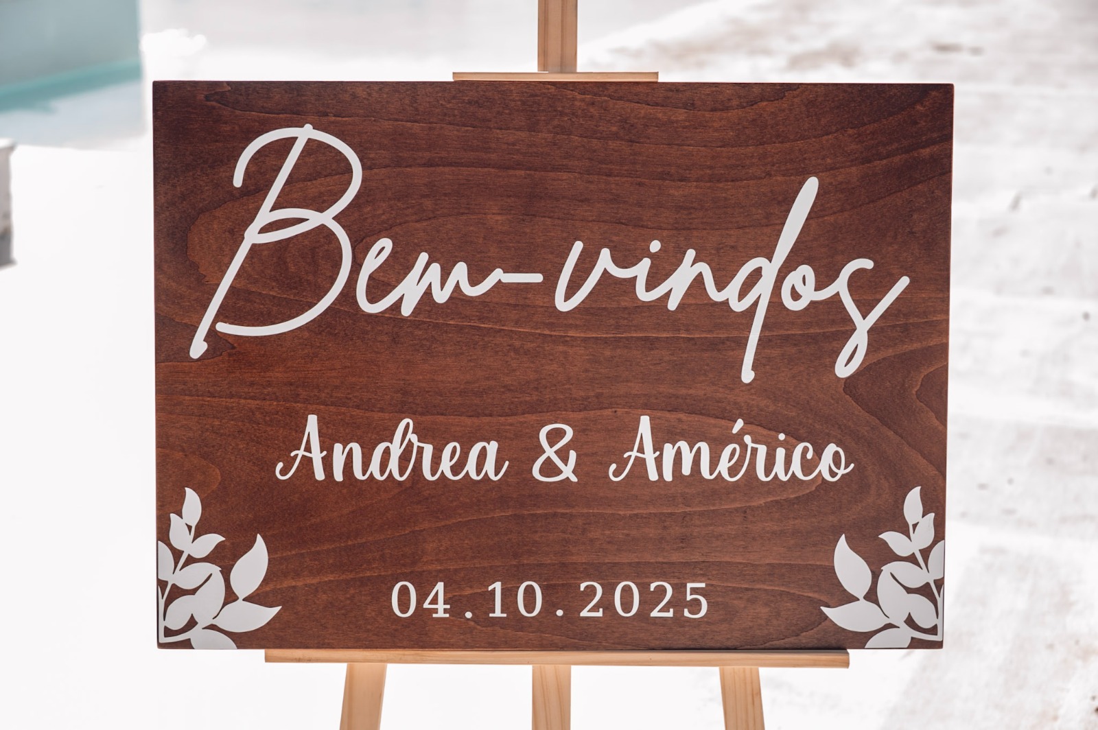 Personalização e nomes e data a vinil branco.